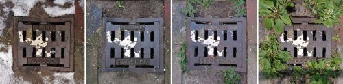 Een van mijn doorgaande ‘projecten’ is het fotograferen van putdeksels. Ik breng de foto’s onder in verschillende series, zoals plaatsnamen, ‘inhoudelijke opschriften’ (regenwater, vuil water…) en ‘speciale vormen’. Ik heb ook een mapje gemaakt voor de put op het afgesloten parkeerterrein bij de flat waar ik woon. In het kader van de aansporing ‘hou het dicht bij huis’ maakte ik het afgelopen jaar foto’s van die put, in verschillende jaargetijden en onder verschillende weersomstandigheden. Nu heb ik een dilemma.