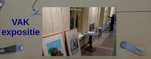 Ons werk zal een maand te zien zijn, tot maandag 12 maart, want dan is er een andere cursistengroep aan de beurt. Dus mocht je komende maand in de buurt zijn: loop eens langs bij de VAK, dan kun je zien hoe divers we allemaal bezig zijn. Van mij komen er twee schilderijen te hangen: de ‘huisjes’ waarover ik eerder een blog heb geschreven, en mijn nieuwste werk op basis van een reliëf-element, op het ontstaan waarvan ik later waarschijnlijk nog een keer terug zal komen.VAKexpo3