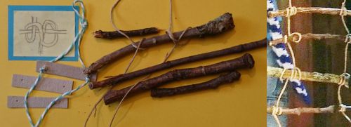 Op verschillende scoutingsites stonden bruikbare voorbeelden, maar het in praktijk brengen viel niet mee. Voor elke knoop moest ik weer op het plaatje kijken en mijn touwtjes glipten steeds weg of krulden de andere kant op. Vroeger heb ik me wel eens aan macrameeën bezondigd, maar dat was van heel korte duur. Nu weet ik weer waarom.