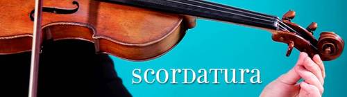 Mijn Van Dale kent ‘scordatura’ niet, maar de term heeft wel een lemma in Wikipedia, met de definitie: wijziging van de normale snaarstemming bij een snaarinstrument. Het Lexicon Klassieke Muziek voegt daaraan toe: ‘om sommige akkoordgrepen mogelijk te maken, om te transponeren of om een ander timbre te krijgen’.