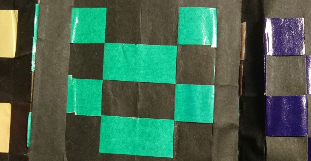 Een duidelijk uitleg van verschillende keperbindingen staat op deze site, met een heleboel patronen en voorbeelden. Ik moest af en toe wel sterk denken aan een van de ‘vakken’ op de kleuterschool, namelijk het vlechten van matjes met stroken papier. en zowaar, ik vond er een paar terug (uit 1959)!