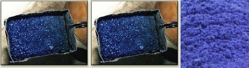 Denk je min of meer te weten hoe het zit: via een smelt-procedé blauw glas maken en dat verpulveren, staat dat allemaal weer op losse schroeven! En inderdaad trof ik op internet een smaltfabriek die smalt in verschillende kleuren maakt voor mozaïeken.