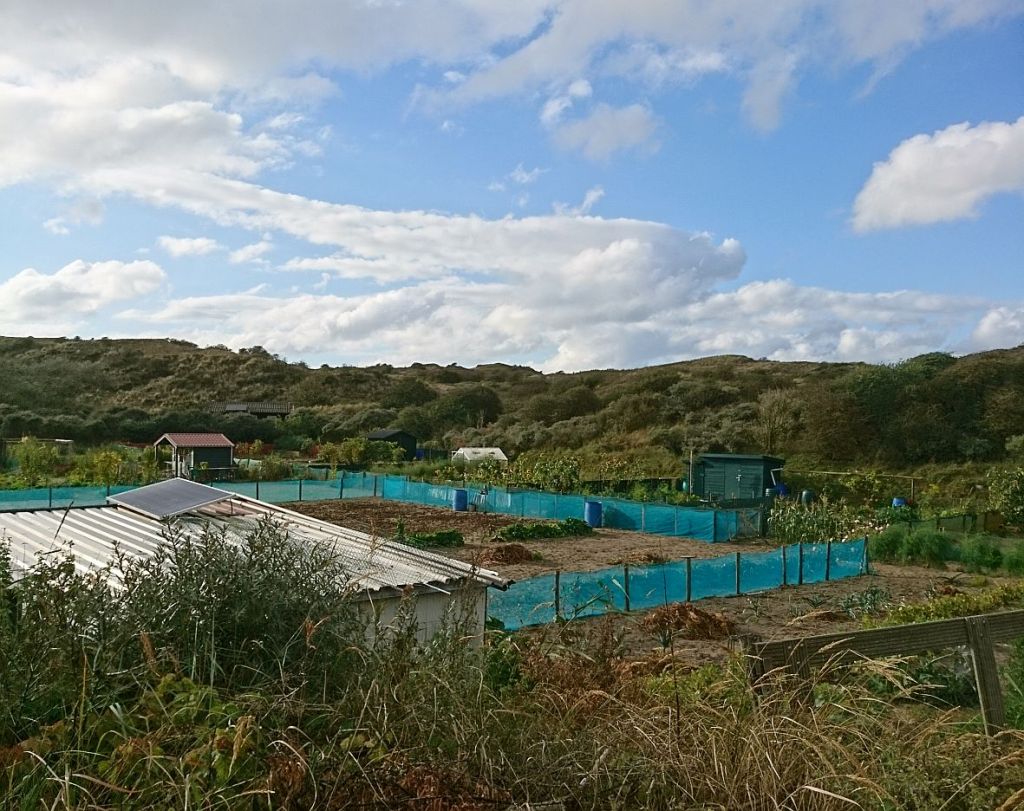 In wezen verschillen mijn bezigheden in de vakantie niet veel van thuis. In plaats van de papieren krant lees ik hem dan op mijn tablet, ik handwerk wat meer en zet mijn vijfduizend (of meer) stappen in een andere omgeving, in de duinen bijvoorbeeld, waar je een toegangskaart voor nodig blijkt te hebben. Die was verkrijgbaar bij de receptie, die tegenwoordig service point heet. Ons pad voerde onder meer door de Wimmenummerduinen, een zeedorpenlandschap met een groot aantal ‘akkertjes’, een soort volkstuintjes die landjes worden genoemd.