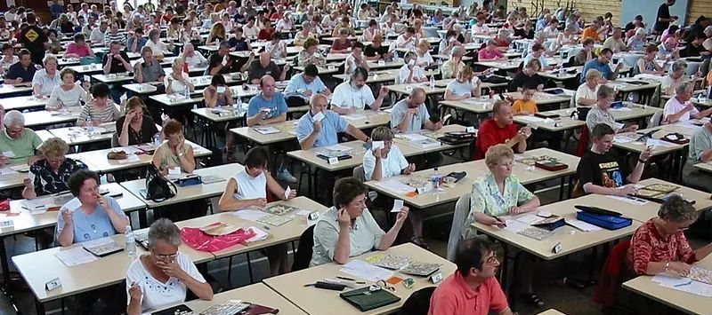 Carla speelt echter scrabble in clubverband en daar gebruiken ze een aparte variant: Duplicate Scrabble. Daaraan kan een onbeperkt aantal spelers tegelijk meedoen en het maakt grote toernooien mogelijk (die meestal door de Vlamingen worden gewonnen). Zelf ben ik niet zo spelletjesfanaat. In mijn herinnering lopen ‘gewone’ potjes scrabble vaak uit op gekissebis en zit je soms eindeloos te wachten. Maar de regels van Duplicate Scrabble ondervangen de meest irritante trekjes van het gewone scrabble.