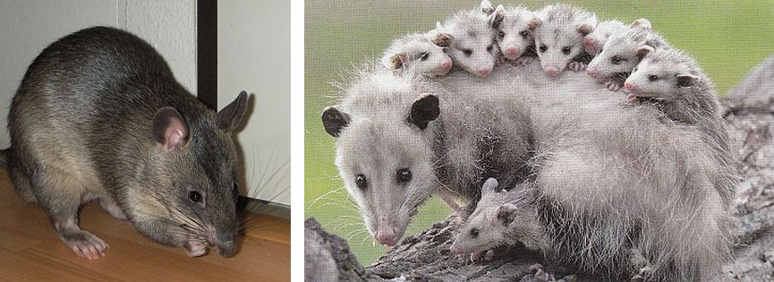 In mijn verzameling vond ik een min of meer vergelijkbaar voorbeeld van de verwarring van twee diersoorten. De meeste lezers hebben het nieuwsbericht over een prijswinnende rat waarschijnlijk voor kennisgeving aangenomen. De krant moest dit naderhand echter rectificeren, want hierin was een hamsterrat ten onrechte een buidelrat genoemd. Die dieren zijn natuurlijk niet zo bekend als een kameel of dromedaris. De verschillende soorten hamsterratten zijn knaagdieren en ze worden in Afrika soms ingezet bij de opsporing van landmijnen. Buidelratten, ook wel opossums genoemd, zijn buideldieren die voornamelijk op het Amerikaanse continent leven. Een opossum verdedigt zichzelf door te doen alsof hij dood is. Hij gaat dan op de grond liggen en houdt zijn adem in. Beide soorten zijn nachtdieren, dat hebben ze gemeen.