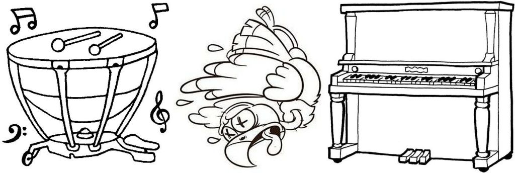 Met als aantekening voor de muziek: doem-doem op pauk; minimal piano; zang: a-klein.