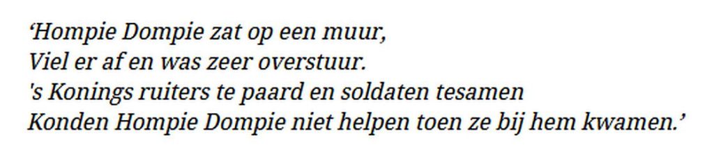 Het rijmpje over Humpty Dumpty kende ik eigenlijk alleen in het Engels. Leuk om een aantal vertalingen ervan te lezen.