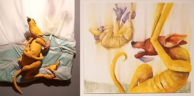 Naast al die opgezette en geprepareerde planten en dieren, al dan niet in een bepaalde context tentoongesteld, was er ook nog een inspirerende expositie van Henrique van Putten met fabeldieren van textiel en aquarellen die ze op basis daarvan had gemaakt (t/m 22 oktober 2023).