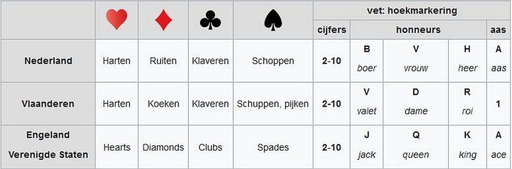 In het weekend kwamen er een paar andere familieleden op bezoek en hebben we ’s avonds gekaart. Van mijn Vlaamse schoonzus Kathleen heb ik daarbij een paar nieuwe kaarttermen geleerd. Een Zot is niet de Joker, zoals ik dacht, maar de Boer. En pijk is schoppen. ‘Pijke Zot’ is dus een Vlaamse schoppenboer. Achteraf had ik dat kunnen weten, want dat pijk is afgeleid van het Franse pique (dat ik ken van de opera Pique Dame, Schoppenvrouw, van Tsjaikovski). En onze Ruiten heten in Vlaanderen Koeken.