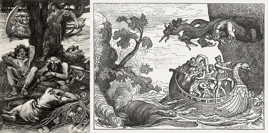 Er kwamen allerlei belangwekkende meningen en invalshoeken langs en mijn stapel (opnieuw) te lezen boeken is weer behoorlijk gegroeid. ’s Avonds hebben we een film bekeken, Troy, met Brad Pitt als een bijzonder ongeloofwaardige Achilles, en een televisieserie waarin het verhaal van de Odyssee van Homerus min of meer wordt gevolgd. Dit beeldmateriaal sloeg bij mij minder aan, hoewel het altijd grappig is om te zien wat de makers doen met monsters zoals de cycloop Polyfemos en het zeemonster Scylla. Daarover wil ik nog iets meer te weten komen, want net zoals de sirenenzang lijken ze me geschikt voor een afzonderlijk blogstukje. Dat geldt ook voor verschillende volken die Odysseus onderweg naar huis tegenkomt, zoals de drugsverslaafde Lotuseters en de kannibalistische Laistrygonen.