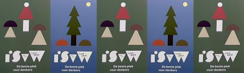 PS De ISVW heeft een nieuwe huisstijl, opgebouwd uit zeven elementen die in verschillende samenstellingen onder meer op de cursusmap stonden. Het resultaat heeft wel iets weg van tangrampuzzels.