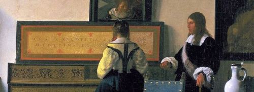 Bij het bekijken van afbeeldingen van een aantal schilderijen van Vermeer viel mijn oog op een detail van het schilderij De Muziekles. Daarop zit een vrouw achter een toetsinstrument waarvan het deksel is opengeklapt en met enige moeite kon ik de tekst erop ontcijferen: Musica laetitiae comes medicina dolorum, wat min of meer te vertalen is als: ‘Muziek is metgezel van vreugde en geneesmiddel voor verdriet’.