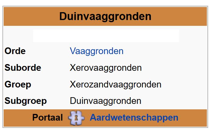 In dat lemma stond nog veel meer wetenswaardigs, onder meer een lange lijst met andere mij onbekende, maar prachtige benamingen van grondsoorten. En al die gronden zijn ingedeeld volgens een hiërarchische classificatie, vergelijkbaar met die voor planten en dieren.