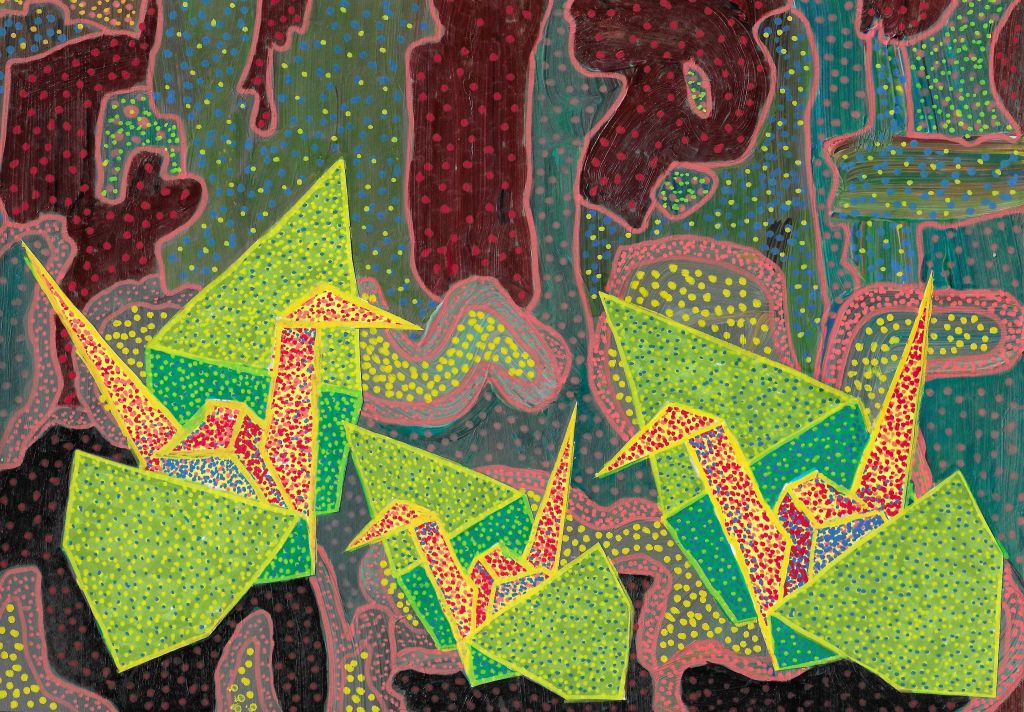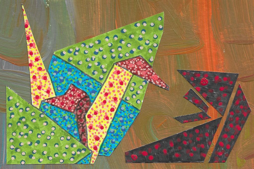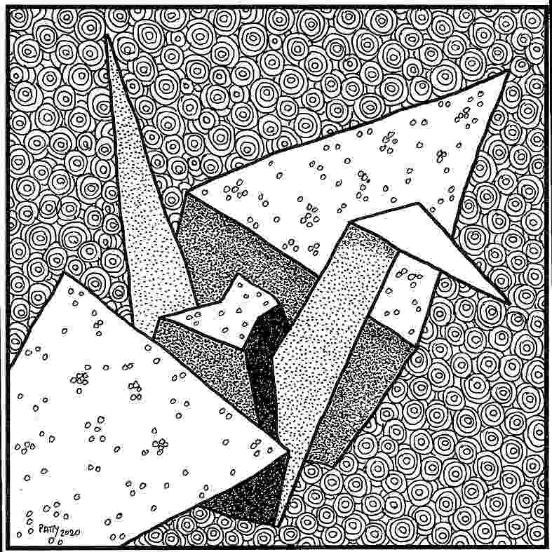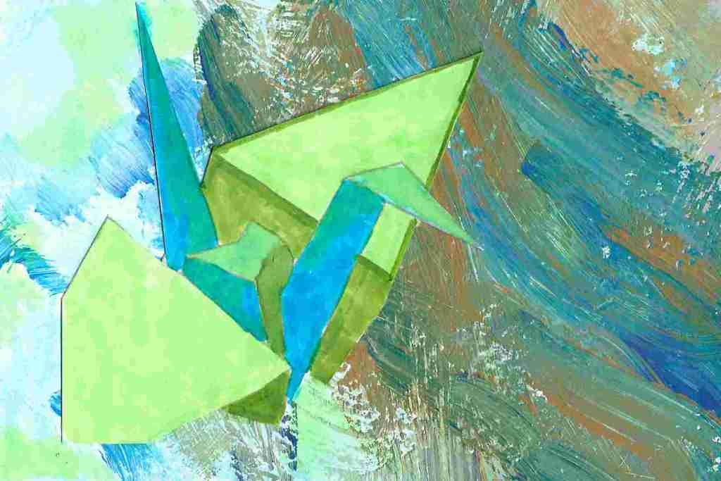 In 2019/2020 heb ik me onder meer beziggehouden met origami, met name het vouwen van kraanvogels. Daar maakte ik dan een foto van die ik weer gebruikte als basis voor kaarten, tekeningen en andere werkjes. Een aantal ervan kwam uiteindelijk terecht op mijn jaarkalender voor 2021.