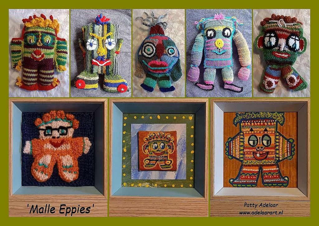 Vanaf 2022 ben ik bezig met het maken van ‘Malle Eppies’: gebreide, gehaakte en naderhand ook geschilderde poppen/knuffels. In de loop der tijd heb ik daar verschillende blogstukjes aan gewijd.