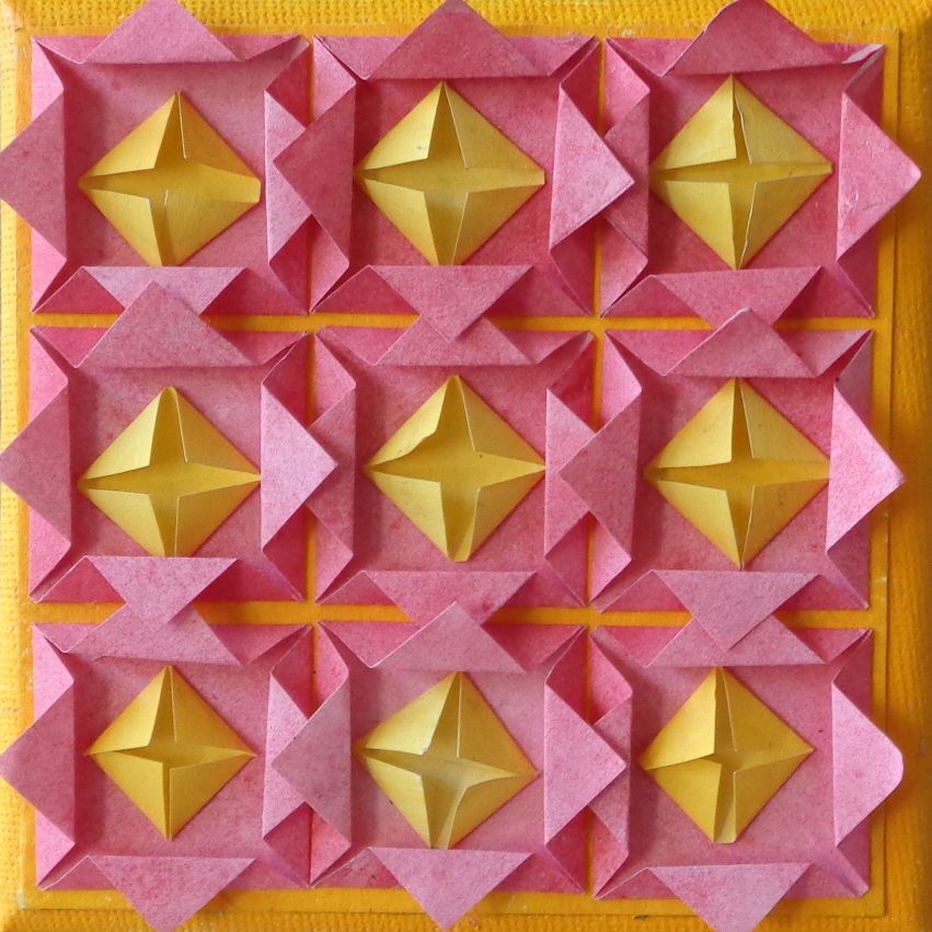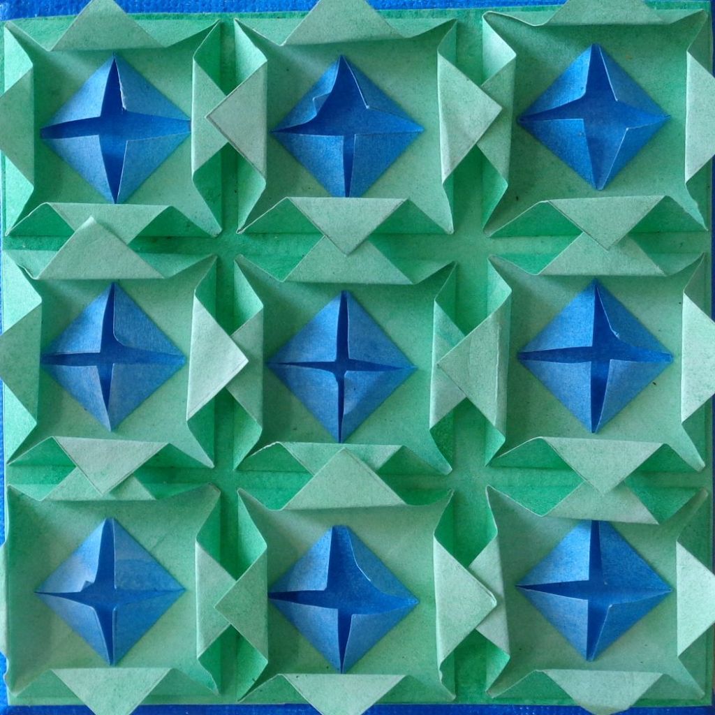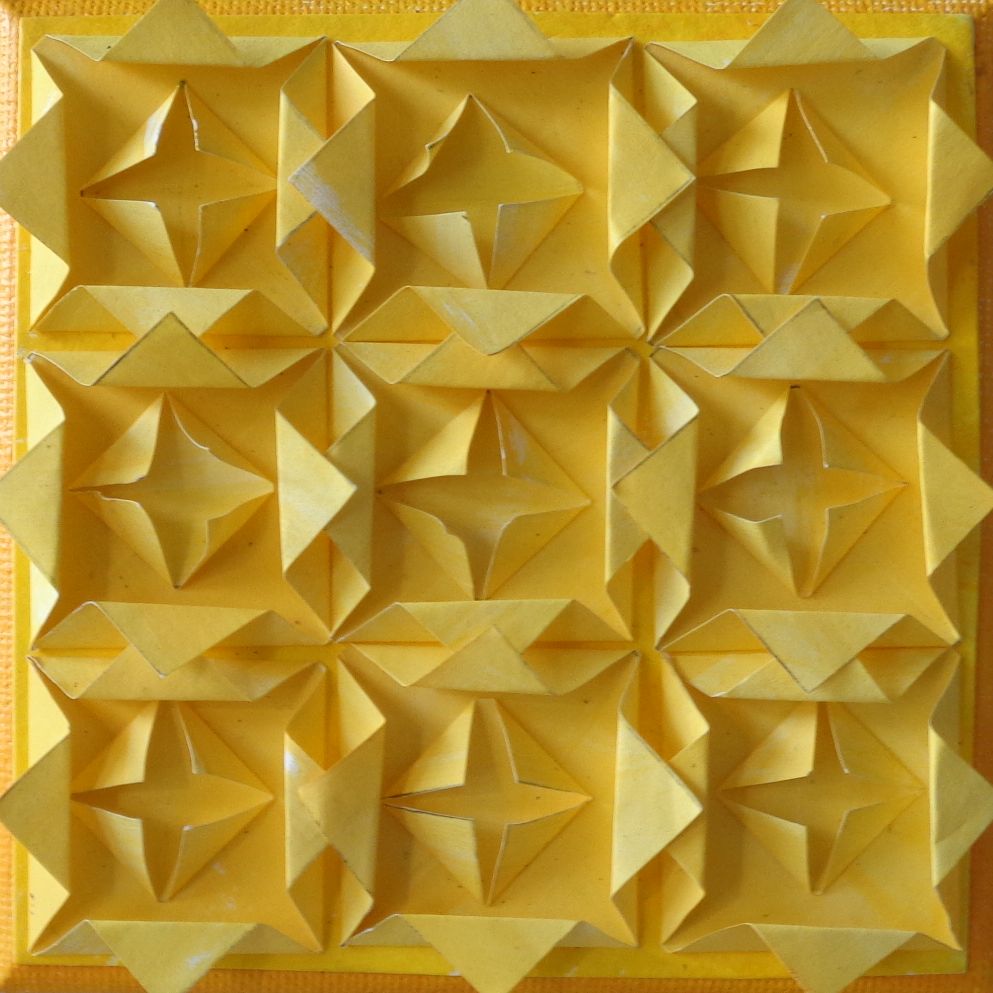 Een jaar of vijf geleden was ik in de ban van het maken van reliëfs van papieren elementen. In een blogstukje van december 2017 beschreef ik hoe ik daartoe gekomen was; in 2018 volgden er nog twee stukjes: in januari over de experimenten met gekleurd papier en in maart over het toepassen van een nieuw basiselement.
