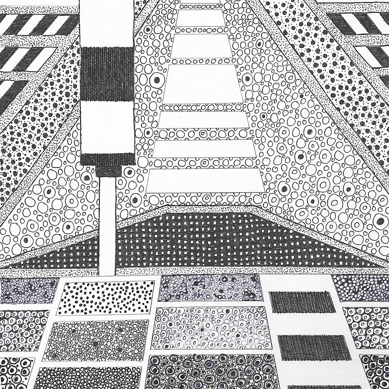 Een speciale categorie tekeningen zijn de series waarin ik verschillende tekenvormen loslaat op een referentiefoto. Daarbij gebruik ik vaak de zentangle-techniek: het vullen van vlakken met herhaalde patronen. De meeste hebben het formaat 15x15cm en sommige A4